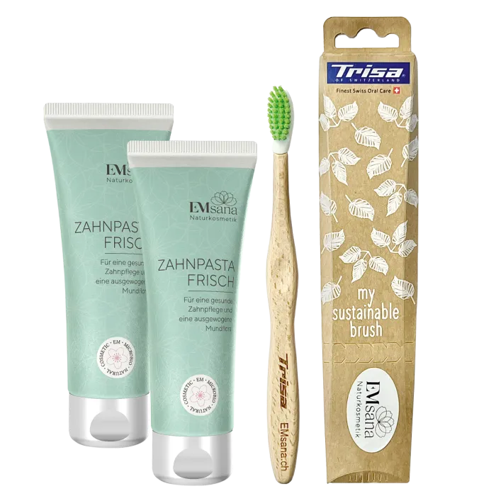 Die natürliche, gesunde Zahnpasta mit einzigartigen Inhaltsstoffen für Ihre tägliche Mund- und Zahnpflege. Mit Xylit, EM-Antioxidantien und EM-Keramikpulver. Mit Kamillen- und Hamamelis-Extrakt, erfrischendem und belebendem Minzöl und den regenerierenden Bachblüten Holzapfel, Eiche und Olive. Ohne Fluorid, ohne SLS. Erhält Ihre Mundflora und lässt Ihr Lächeln erstrahlen.